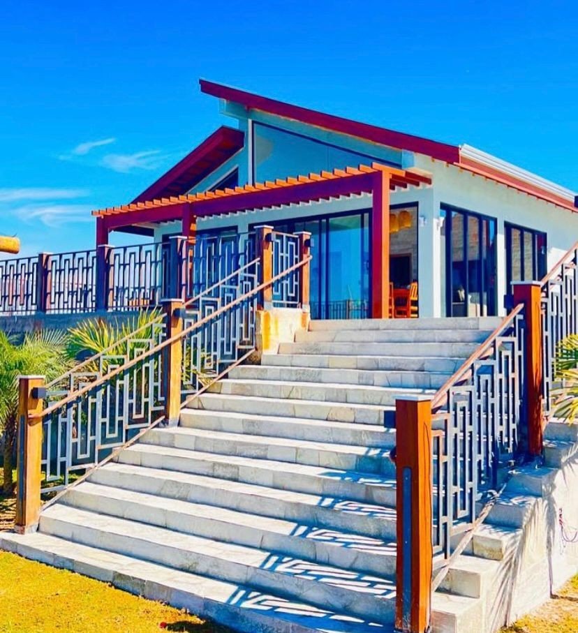 Após a cerimônia no morro do gavião, enquanto os noivos ficam tirando fotos lá, os convidados já seguem para os chalés arco íris, para a recepção e festa que acontecerá tudo no mesmo local.